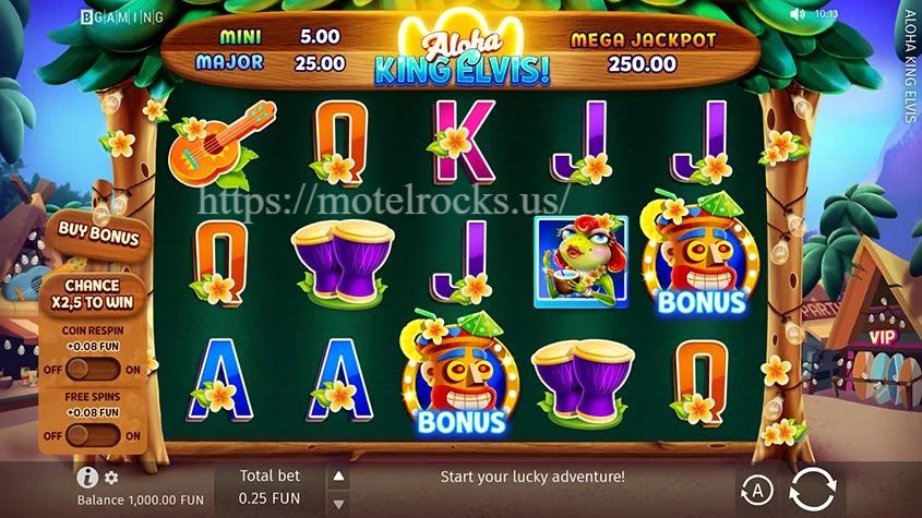Aloha King Elvis menggunakan format 5 gulungan dan 25 paylines, cocok bagi pemula maupun pemain berpengalaman.